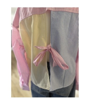 Chemise femme rayée multicolore au style patchwork, confectionnée en coton léger