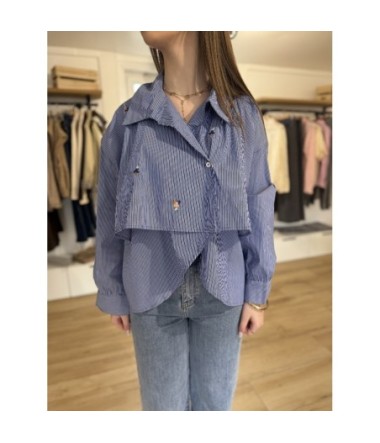 Cette chemise n'est pas un basique ordinaire ; c'est une pièce mode qui joue avec les volumes et les conventions. Conçue pour celles qui aiment les détails atypiques, elle allie le classicisme de la rayure "office" à une coupe avant-garde.